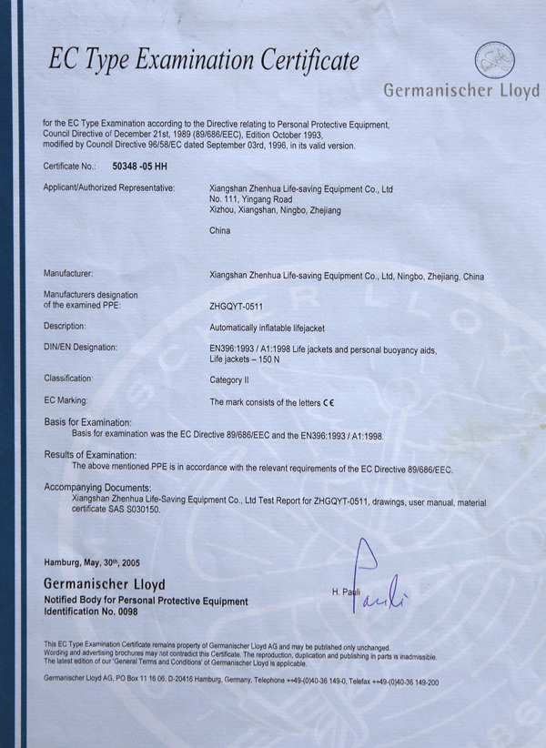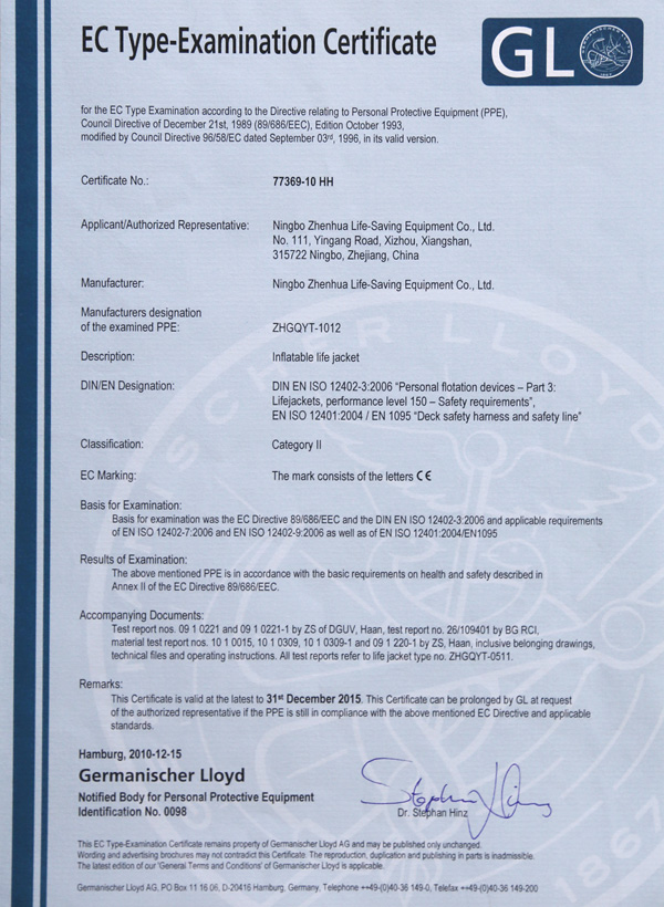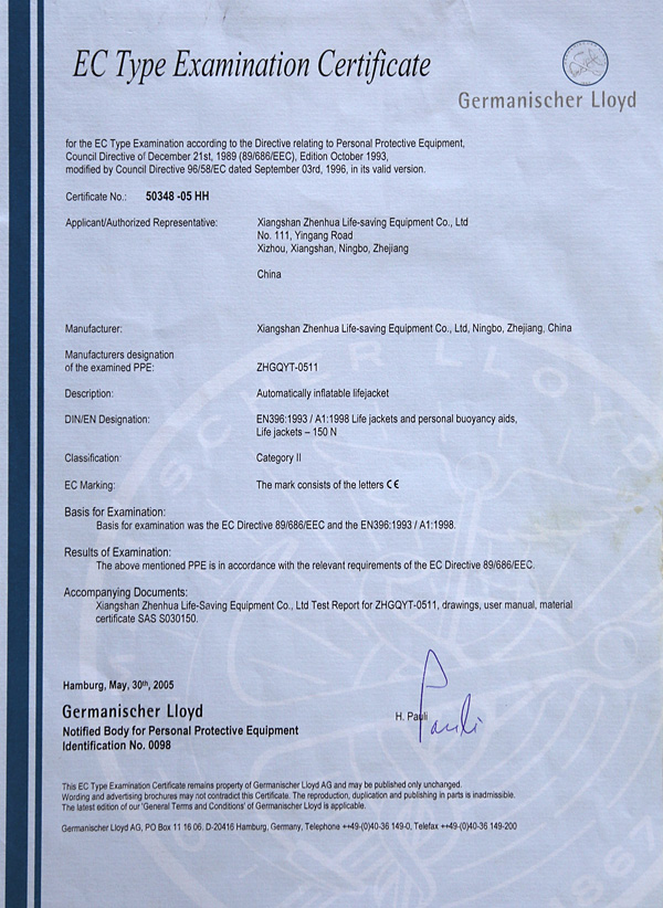 Αυτόματο φουσκωτό σωσίβιο έκτακτης ανάγκης